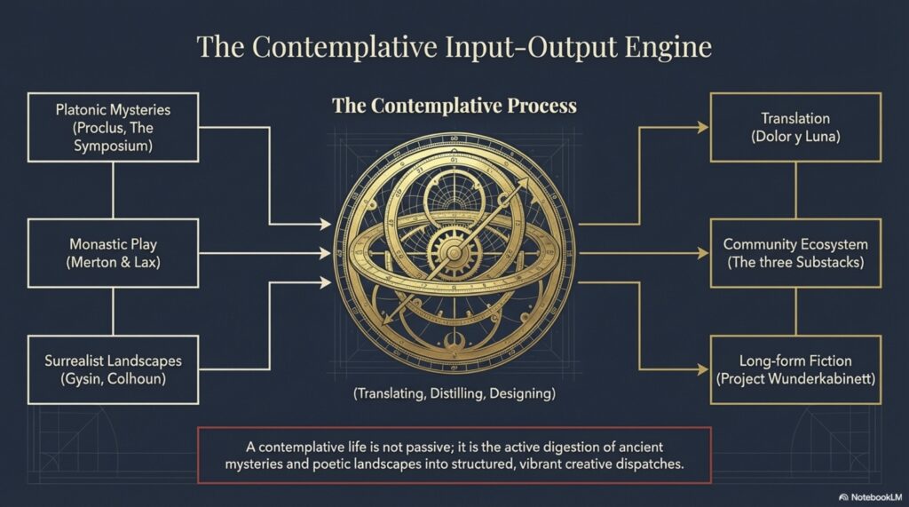 I’ve continued my study of AI potentials. I’m especially enjoying the discoveries through slide decks of key concepts held in my writing, and all the images in this Seasonal Dispatch are examples based on this article.