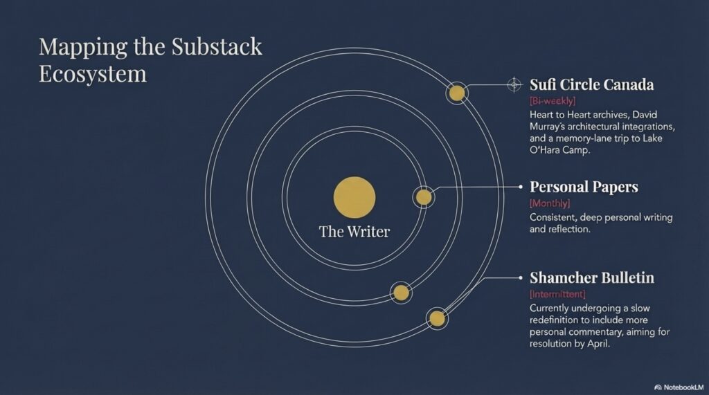 I’m also helping to produce a Substack for the Sufi Circle Canada, based on earlier postings from their Heart to Heart Newsletters, as well as new material gathered by David Murray. It’s going out every two weeks, and is packed with research, interesting details and lots of good inspiration about the people involved. As David is an architect, buildings and architecture are often featured as well, giving place and form to the ideas and concepts. It is a trip down memory lane for me to recall those days of Lake O’Hara Camp and the dear shining souls that we were back then.