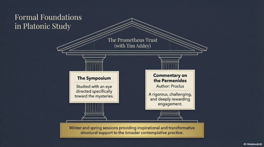 This winter and spring I’ve continued online sessions with Tim Addey and The Prometheus Trust. They have been inspirational and transformative. I’m participating in the study of The Symposium, with an eye to the mysteries, and another challenging and rewarding class on Proclus’ Commentary on the Parmenides.